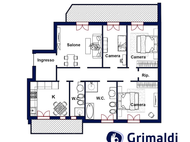 GRIMALDI IMMOBILIARE VOMERO ALTO - Propone in vendita appartamento in parco di 140 mq circa ,con due ampie balconate, situato al quarto piano di uno stabile moderno dotato di ascensore. L'immobile è composto da: