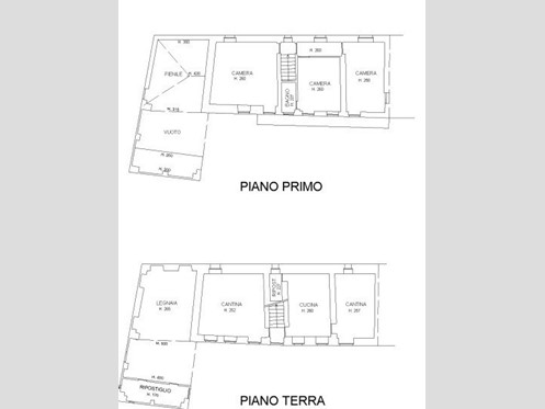 La seconda parte dell'immobile invece è così composta: al piano terra è presente una cucina, una cantina e una camera; tramite scala interna si accede al piano superiore dove troviamo due camere da letto, il bagno e il balcone.