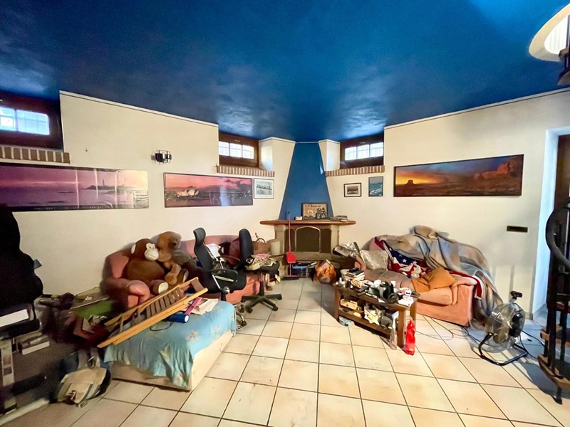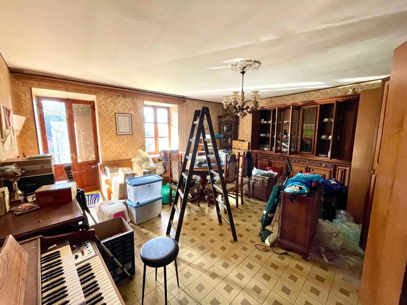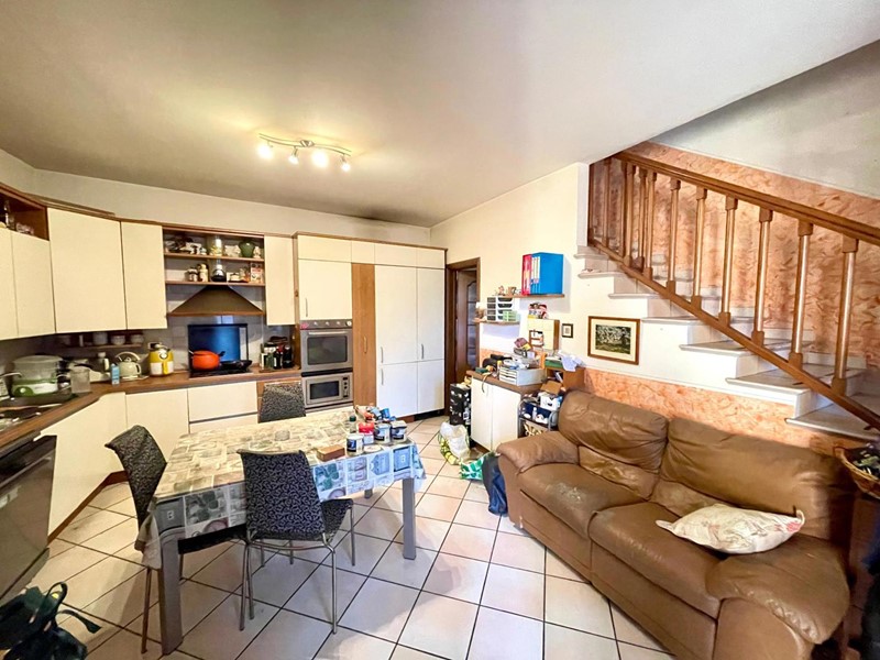 La prima parte d'immobile offre al piano terra una tavernetta con camino, al primo piano una cucina con ripostiglio e una camera da letto, al piano secondo invece è presente un ulteriore camera da letto, un bagno e due balconi; il tutto collegato tramite la scala interna.
