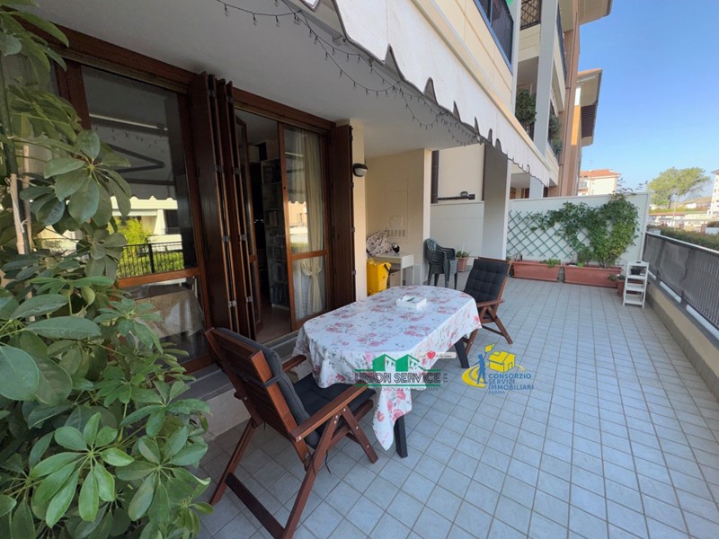 L'appartamento è così distribuito; Ampio salone con terrazza parzialmente coperta di 45 mq. cucina abitabile anch'essa con accesso alla terrazza , reparto notte con bagno, camera matrimoniale con balcone e camera singola.
