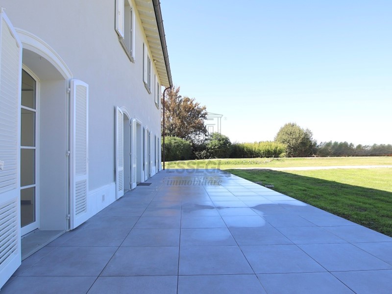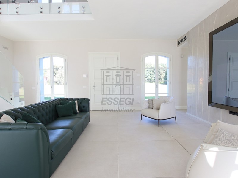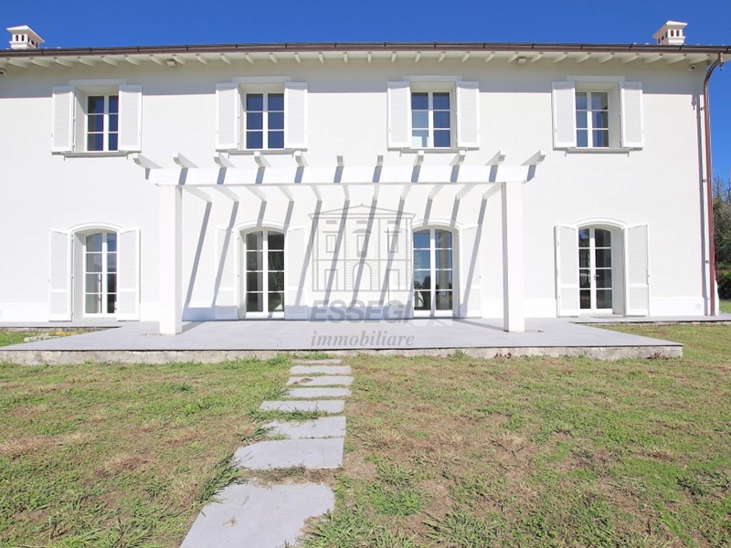 IA04132 VILLA DI NUOVA COSTRUZIONE realizzata ex nuovo con struttura e materiali innovativi.Questa villa unica per le sue caratterstiche è ubicata in zona pianeggiante nel Comune di Capannori è stata appena ultimata .Ha in corso il completamento delle opere esterne ( parco,piscina,viabilità). Per la costruzione sono state utilizzate tecniche innovative per antisismica,insonorizzazione,risparmio energetico che individuano la villa in classe A4. Il fabbricato è stato realizzato con struttura in cemento armato con tamponatura in laterizio. il solaio del piano primo è in latero-cemento, mentre il solaio di copertura è in legno. Gli infissi sono in legno con vetro termico e sono certificati. Il tetto è isolato con pannelli in fibra di legno. L'impianto di climatizzazione è stato realizzato con pompa di calore idronica e caldaia a condensazione ad integrazione. L'impianto è di tipo radiante a pavimento e i fancoil sono idronici. E' presente la VMC centralizzata. In copertura sono presenti pannelli solari fotovoltaici per una potenza complessiva di kw. 10,40. Sono presenti due batterie di accumulo di 12 kw cadauna di marca Tesla. L'impianto elettrico è di tipo domotico. Le finiture interne ed esterne sono lussuose, modernissime che rendono la villa funzionale e luminosissima . Allarme interno e perimetrale a pressione.