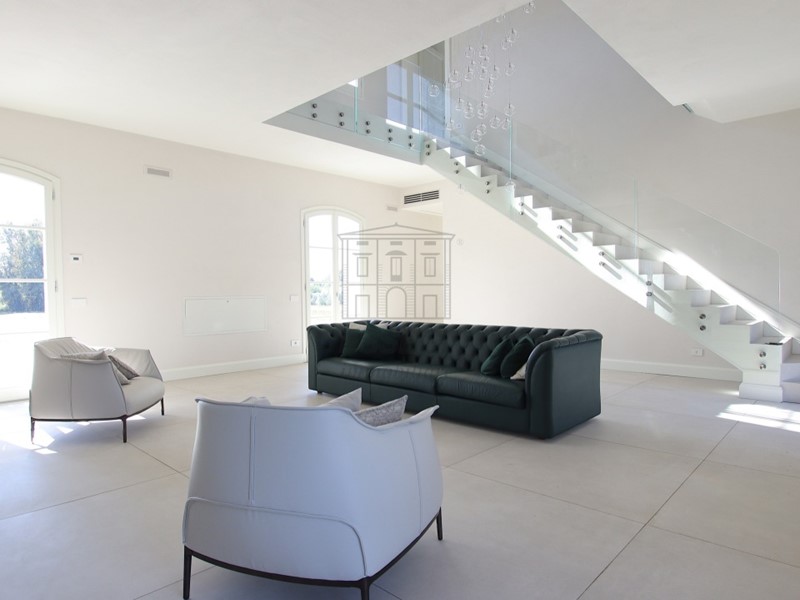 Internamente si apre in grandi spazi quali l'ampio ingresso con scala a vista,una grande cucina abitabile arredata, un salone doppio. La zona notte posta al piano primo ha un grande disimpegno, una camera padronale en suite con bagno doccia e vasca e altre due camere ciascuna con bagno. Il terreno in dotazione è di circa mq.15.000 ed è idoneo a realizzare un magnifico parco. La villa viene venduta arredata con arredi di primissima qualità. Richiesti €.1.800.000
