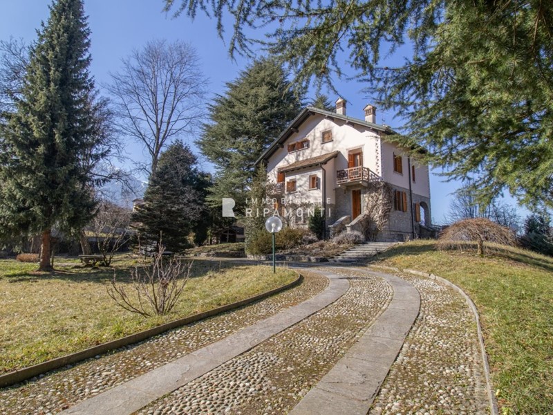 VILLA SINGOLA A CREMENO \nPosta ai piedi della Grigna, con vista panoramica sulla corona delle montagne circostanti, in posizione dominante sulla vallata sottostante, si caratterizza per l'antica struttura e per le caratteristiche di realizzazione.\nSi identifica come un immobile signorile ed è inserita in un parco privato di circa 3.000 Mq. Sviluppa una superficie commerciale 350 Mq. \nCostantemente mantenuta con cura in ogni particolare ed adeguata ai tempi dalla attuale proprietà beneficia, di finiture signorili e soluzioni architettoniche personalizzate. \nDisposta su tre livelli fuori terra si compone: \n\nCOMPOSIZIONE:\nAl piano seminterrato oltre al box doppio, fruisce di una taverna con camino, ripostiglio, cantina, lavanderia e locale caldaia.\nAl piano rialzato, si sviluppa una terrazza panoramica affacciata su parco, ingresso, grande salone con un angolo dove è posizionata una stufa a fuoco continuo, cucina abitabile, sala da pranzo, bagno. \nAl piano primo collegato da scala interna sono posizionate tre camere, due bagni, due balconi. \nAl piano mansarda camera matrimoniale di dimensioni doppie e con studio, bagno, cabina armadio, sottotetto. \n\nSUPERFICIE:\nSviluppa una superficie di circa 350 Mq. con una superficie del parco di circa Mq. 3000.\n\nFINITURE:\nFiniture signorili e soluzioni di arredo. \n\nARREDAMENTO:\nViene proposta non arredata. \n\nRISCALDAMENTO E CLIMATIZZAZIONE:\nRiscaldamento con caldaia turbo a condensazione a basamento a metano, idonea per potenza al riscaldamento di tutta la villa e per la produzione di acqua calda sanitaria. \nClasse energetica G, indice di prestazione energetica 250.50.\n\nRif. 124V \n\nPer la tutela della Privacy, in alcuni casi su esplicita richiesta del venditore, gli indirizzi sono indicativi. \nPer informazioni chiama subito Ufficio 0341.353.650. Cell. 335.840.1538. \nVisita il sito www.immobiliripamonti.it \n - Maggiori Dettagli: Vista panoramica, Giardino Privato, Balcone, Porta Blindata, Cucina Abitabile, Taverna, Animali Domestici , Giardino Alberato , Terrazzo Panoramico