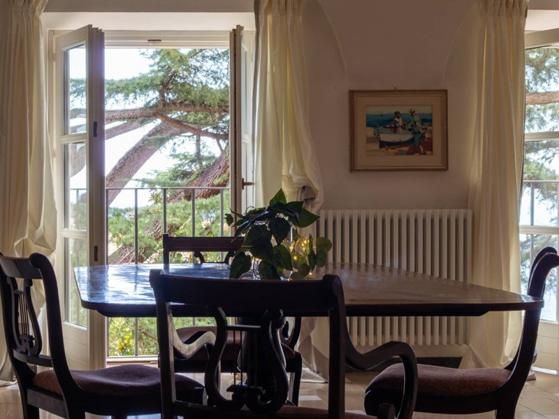 Appartamento in vendita a Bergeggi - Nel prestigioso Castello di Bergeggi, denominato Villa Guendalina, proponiamo in vendita un padronale appartamento affacciato sul mare, posto al piano primo, con tripla esposizione a Sud/Est/Ovest, disposto su un unico livello, avente una corte con giardino di proprietà circondato dalle mura del castello. Con splendidi soffitti affrescati, l'immobile misura circa 140 mq ed è così composto: ingresso, salone, studio, sala da pranzo, cucina abitabile, disimpegno, due camere matrimoniali, doppi servizi. Dall'ampia superficie finestrata è possibile godere di una suggestiva vista mare, mista alla vegetazione tipica del luogo. Le rifiniture di pregio e l'ottimo stato di manutenzione non rendono necessari particolari lavori di ristrutturazione.