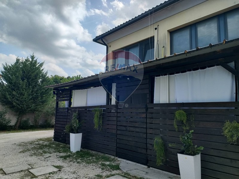 Il locale adibito a ristorante di mq 170 si trova al primo piano dotato di due sale per consumazione, tre servizi igienici con antibagno, cucina, dispensa, spogliatoio, wc, e nel sovrastante sottotetto, monolocale con servizi, accessibile da antistante androne che consente l'accesso a cucina, disimpegno, ripostiglio, camera matrimoniale e bagno.