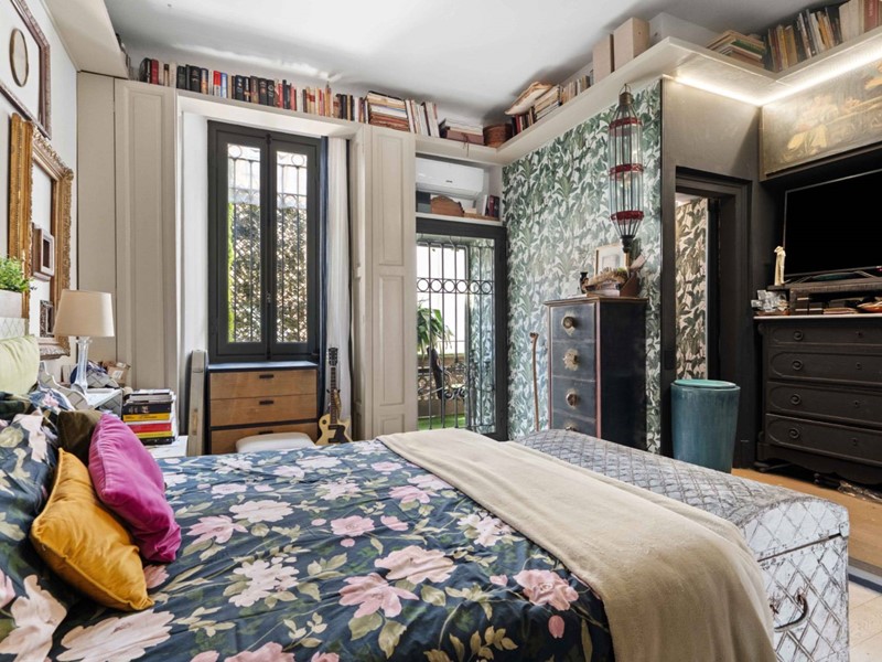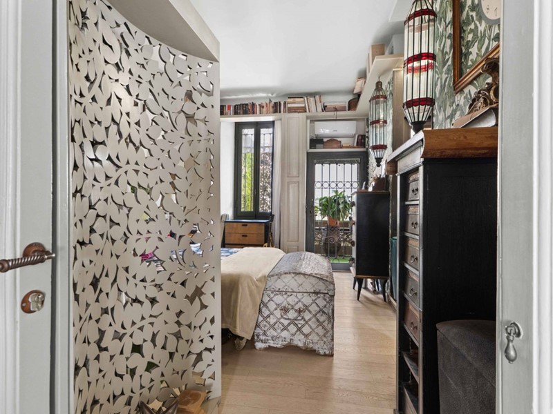 Posta al secondo piano di un edificio di quattro, la residenza accoglie gli ospiti con un ingresso privato dal ballatoio, recintato da una cancellata depoca che garantisce riservatezza e charme. Un portone in ferro battuto con doppi vetri introduce alla cucina, luminosa e finemente arredata, preceduta da un corridoio dingresso che conduce a un salottino raccolto, ideale per colazioni e momenti di quiete.