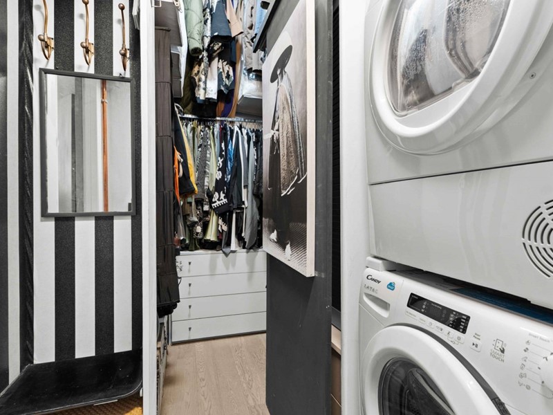 La zona notte comprende una spaziosa camera matrimoniale con accesso diretto al ballatoio, una cabina armadio a U funzionale e discreta, doppi servizi elegantemente arredati e una zona lavanderia perfettamente integrata.