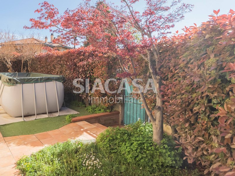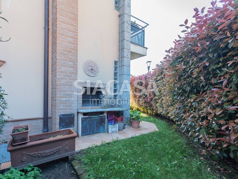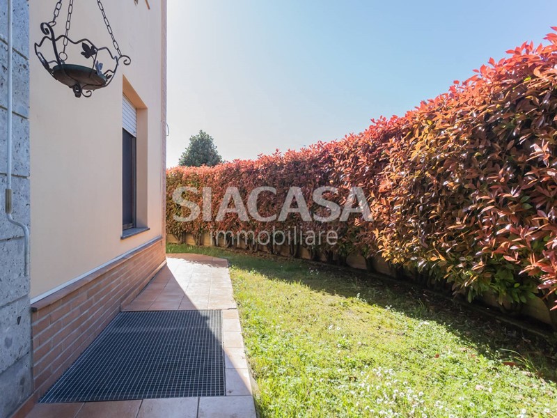 4 LOCALI CON TAVERNA E GIARDINO IN VENDITA A BUSNAGO IN VIA DEI GELSI. Propone Geom. Filippo Bucci, in contesto tranquillo, ultimato nellanno 2000, esclusivo e introvabile 4 locali su unico piano, oltre taverna con box doppio e giardino privato. Lappartamento, di totali mq 160, è così composto: PT ampio salone con zona pranzo, cucina abitabile, camera matrimoniale, camera singola, studio/guardaroba e doppi servizi (uno con vasca ed uno con doccia); PI spaziosa taverna con locale dispensa e camino (da mettere a norma in quanto utilizzato come arredo), cantinetta e box doppio in lunghezza collegato direttamente. Esternamente troviamo il giardino con due zone terrazzate, ideali per pranzare o cenare allesterno. La soluzione è già completa di antifurto, tende da sole motorizzate, zanzariere e irrigazione automatica. Posizione comodissima con le scuole elementari e medie. Il prezzo è di Euro 278.000.