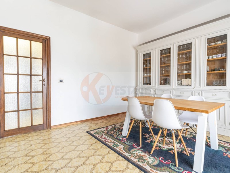 Lappartamento, situato al terzo piano, si apre su un ingresso riservato che accompagna alla spaziosa sala doppia, facilmente modulabile in zona living e sala da pranzo. Da qui si accede al balcone principale, con affaccio su via Diaz e una vista aperta verso viale Dante, che regala luce e respiro agli ambienti.