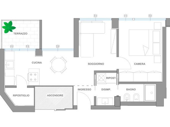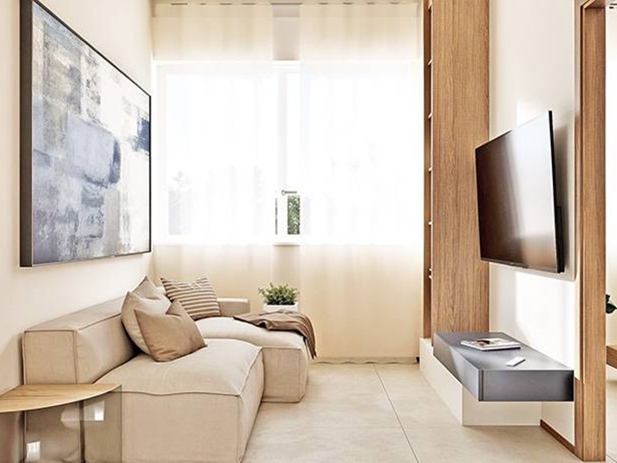 Internamente l'appartamento sarà composto da ampio ingresso, sala tv con ampia e luminosa finestra, cucina con accesso al terrazzo, ripostiglio e sala da pranzo, camera matrimoniale, disimpegno con zona lavanderia e bagno.