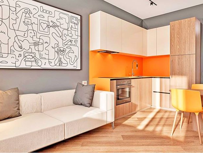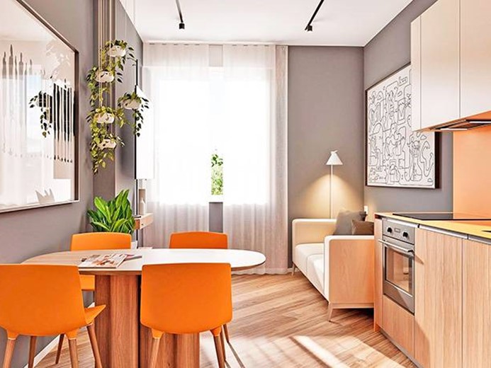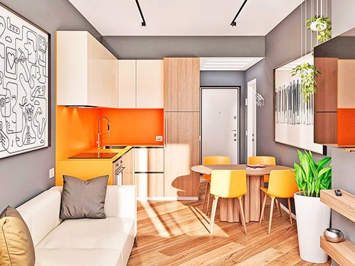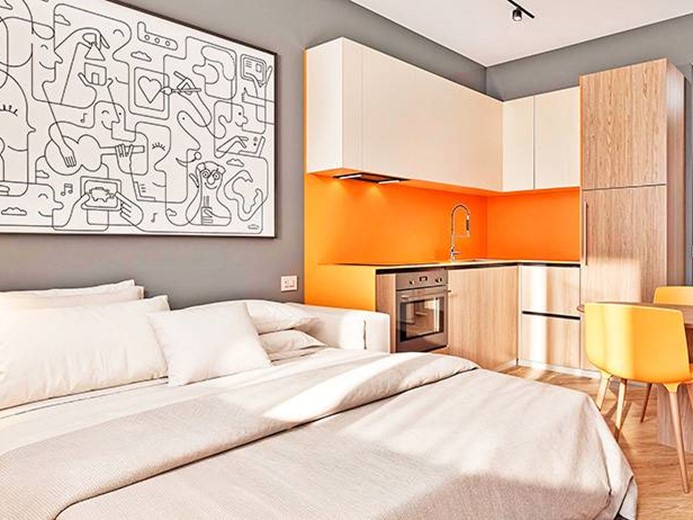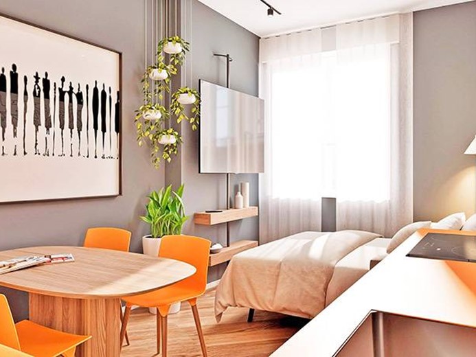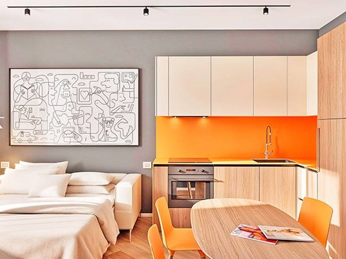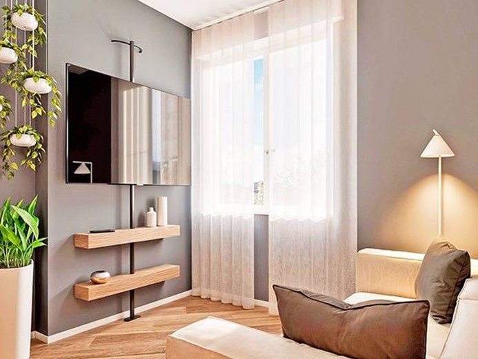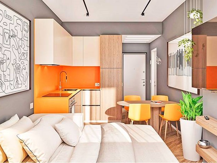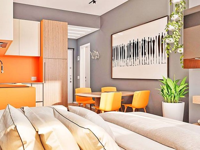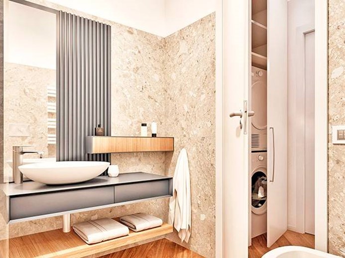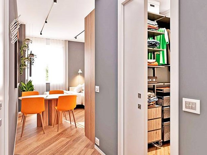Internamente l'appartamento sarà composto da ampio ingresso con cabina armadio, ampio soggiorno/letto con angolo cottura, disimpegno con zona lavanderia e bagno.