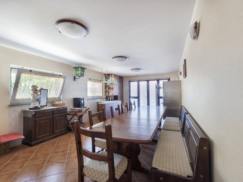 L'appartamento offre un'ampia zona giorno con cucina molto grande a vista e uno spazio dedicato alla soggiorno che affaccia su una piccola corte esterna.
