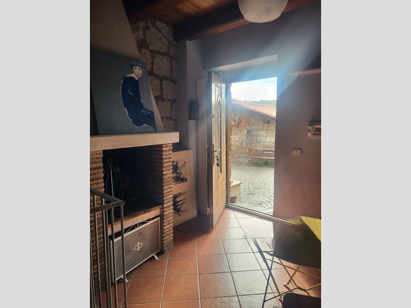Varcando la soglia dellimmobile, tramite due scalini, ci si trova nel piano intermedio dove cè la cucina e il camino. Il pavimento in simil cotto, il soffitto a cassettoni e la parete frontale con i mattoni di tufo a vista rendono lambiente rustico e accogliente. Oltre alla porta dingresso dalla quale entra luce naturale, cè una graziosa finestra.