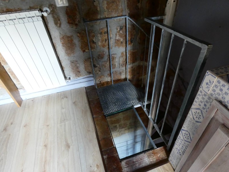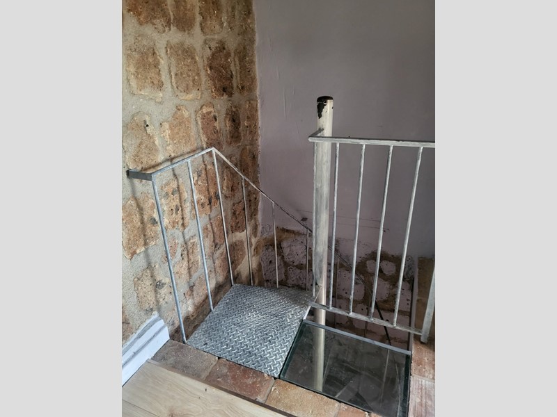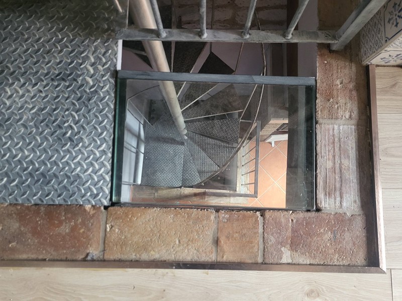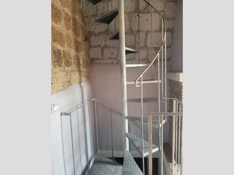La scala a chiocciola in ferro collega i tre piani.