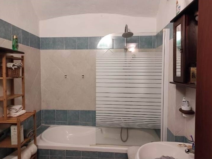 Nel piano interrato vi è un disimpegno con un armadio molto capiente e un bagno grande con vasca.
