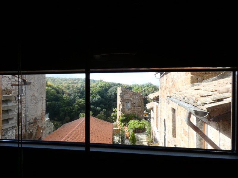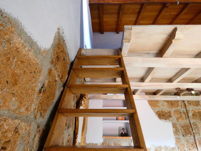Una volta raggiunto il soppalco si ha la sensazione di essere in unaltra dimensione: completamente immersi nel silenzio circostante, si contempla, tramite tre finestre sequenziali, il particolarissimo scorcio dei tetti, il cortile antistante la casa e la natura boschiva.