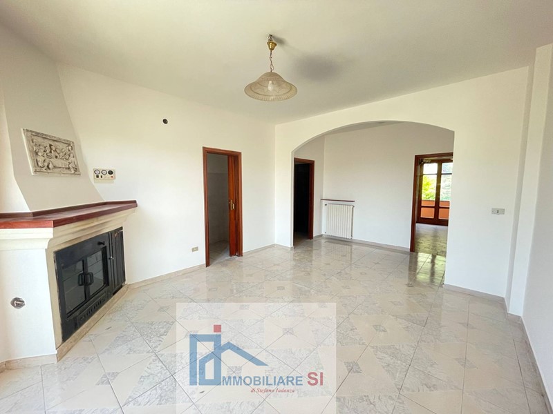 L'immobile è ubicato al primo piano di un più ampio fabbricato il cui accesso avviene tramite scala interna e si compone di ingresso, soggiorno/pranzo con camino, cucinotto, tre camere da letto, cameretta, bagno padronale con doccia e vasca, tre balconi con vista panoramica e sottotetto in grezzo al piano superiore di 80mq.