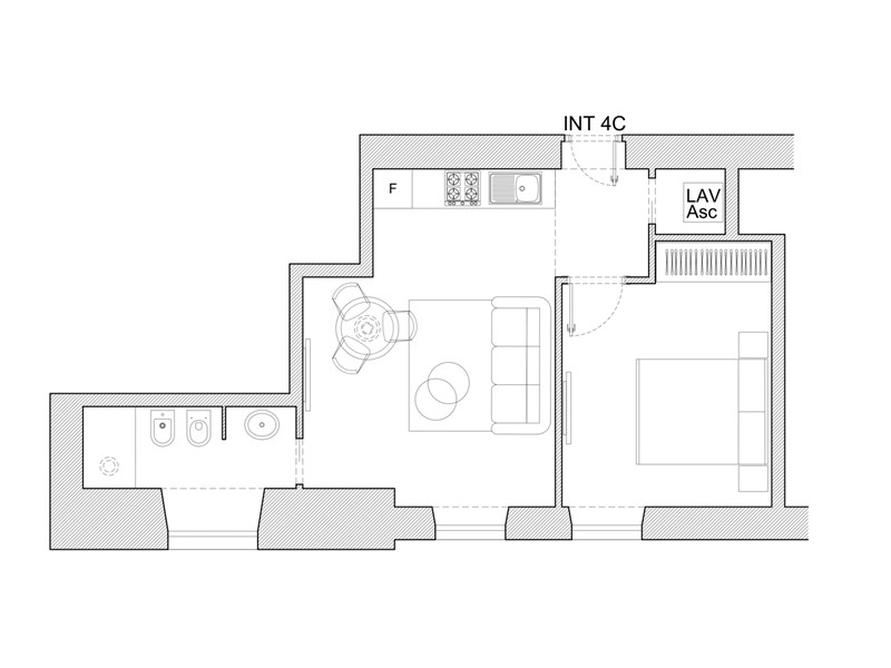 Entrando ci accoglierà un comodo ingresso dove troveremo una zona lavanderia e, proseguendo, una camera matrimoniale con affaccio su Via Verona. Sulla parte destra della soluzione troveremo un ampio soggiorno con angolo cottura e, a seguire, un comodo servizio finestrato. L'appartamento ha esposizione su Via Verona. Andrà a completare la proprietà un comodo soppalco.