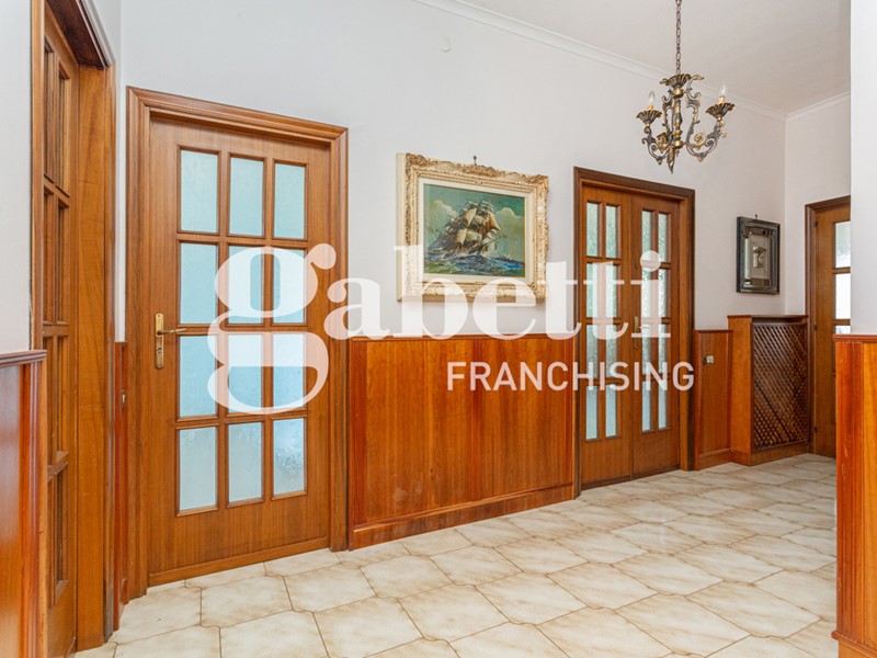 ingresso al piano rialzato in salone doppio di circa 50 mq, cucina abitabile con camino, studio, bagno, balcone e giardino di circa 150 mq;