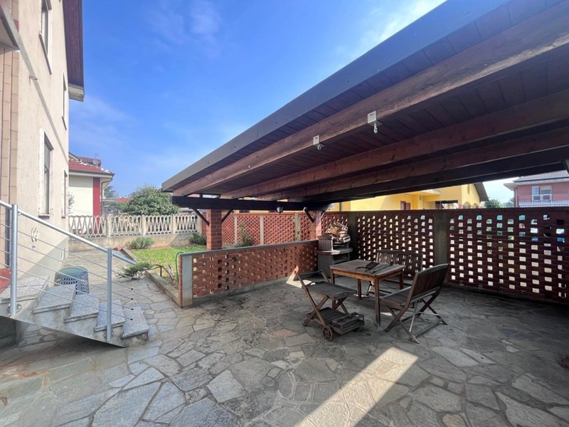 Beinasco: in zona tranquilla di sole villette, circondata dal verde e dalla tranquillità ma al tempo stesso comoda all'ingresso della tangenziale e a pochi passi dal centro del paese, la Grimaldi Immobiliare di Beinasco propone in vendita villa trifamiliare disposta su 3 livelli, libera sui quattro lati con giardino circostante. Tramite il portoncino di ingresso accediamo alla scala comune che conduce ai vari piani, il piano rialzato ed il primo piano sono completamente indipendenti fra loro, ma hanno la stessa metratura e suddivisione degli spazi: ingresso , soggiorno, cucina abitabile, due camere e bagno dotato di doccia. Dalla zona giorno del piano rialzato vi è l'uscita sul balcone collegato direttamente al giardino tramite comoda scala in muratura. Il piano mansardato, completamente indipendente dagli altri due, è caratterizzato da ingresso su soggiorno con cucina a vista, camera, bagno e due ripostigli ed è dotato di finestre e serrande.