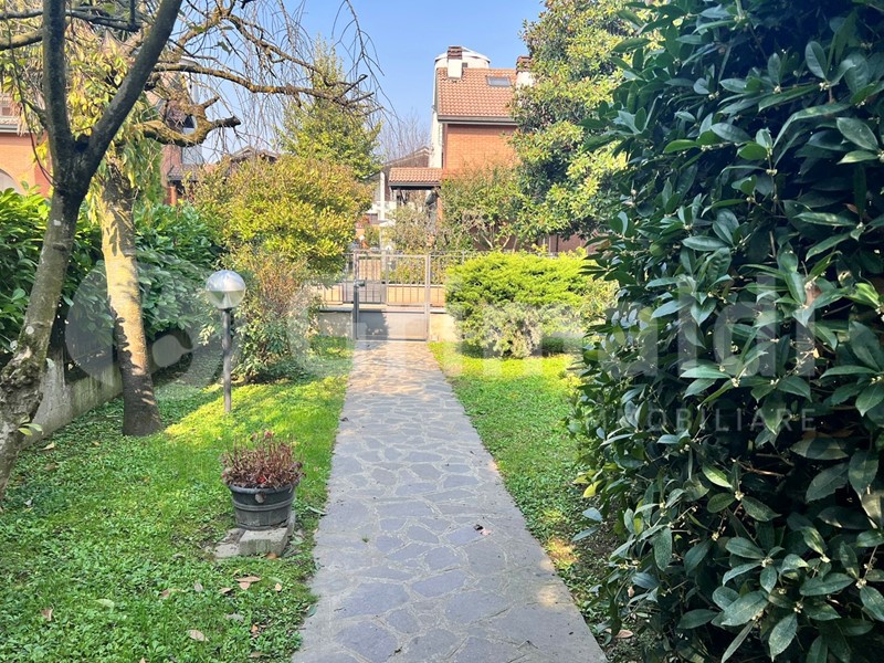 Opera (MI). Centro paese, in un complesso esclusivo e interamente recintato proponiamo in vendita splendida porzione di villa bifamiliare con un'ampia superficie di 222 mq circa distribuita su 3 livelli, con 3 bagni, giardino e box triplo. Costruita nel 1992, ha la concezione degli spazi di una volta, presenta quindi ambienti generosamente distribuiti su tutti i livelli. Al piano terra si trova un sontuoso soggiorno triplo che dà accesso sia al giardino che alla zona notte; una grande cucina abitabile che affaccia sul balcone, un ripostiglio, due camere matrimoniali e un bagno con vasca idromassaggio e doccia. Al piano primo sono presenti altre due camere matrimoniali che affacciano entrambe sul balcone, e una delle due anche sul terrazzino, un grande bagno con doccia, una piccola zona ripostiglio e una zona living luminosissima grazie ad una importante finestra oblò posta sul soffitto, che domina dall'alto il soggiorno. Al piano primo seminterrato si trova un'ampio locale cantina adibito a locale open space ottimamente rifinito e utilizzato come taverna, un bagno lavanderia e il box triplo che dà accesso alla cantina vera e propria.