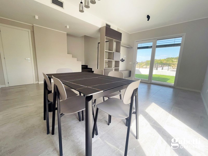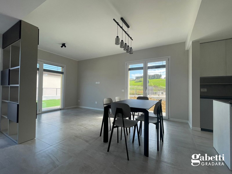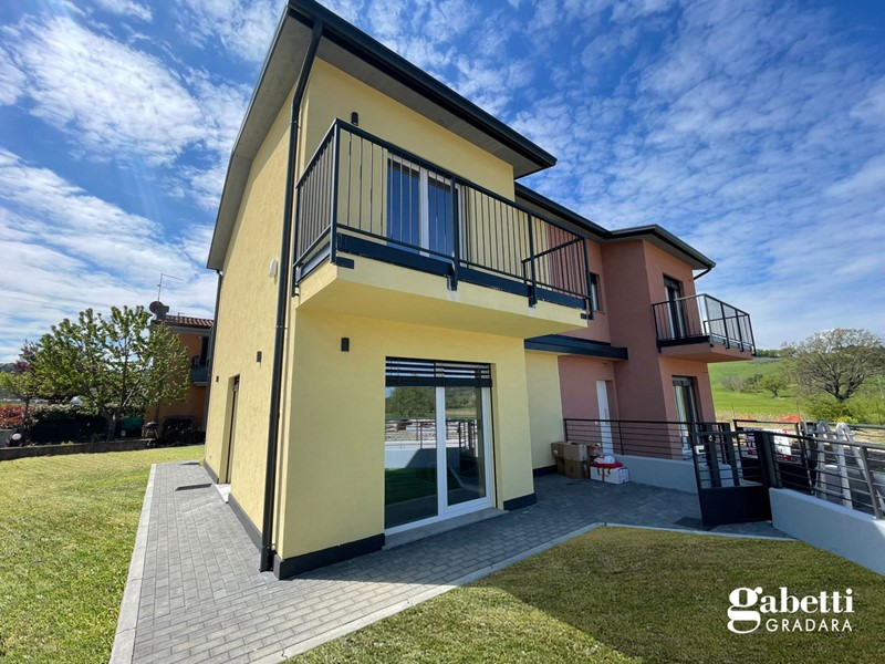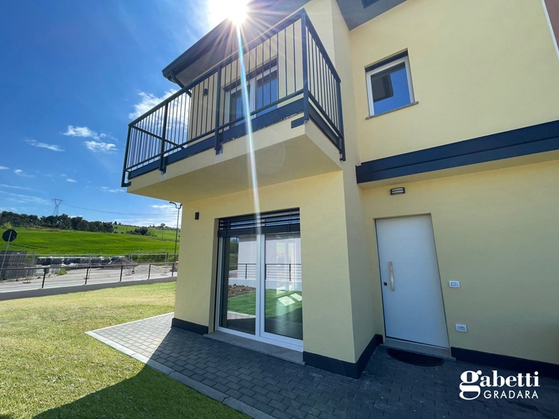 GRADARA - Immerso nella suggestiva cornice del comune di Gradara la nostra agenzia propone in vendita il progetto ecosostenibile GREEN VALLEY. Questa splendida villa bifamiliare con una superficie complessiva di 145 mq distribuiti su due livelli, offre ampi spazi e una disposizione ottimale. L'immobile sarà completato a maggio 2027, con materiali di alta qualità, vanta finiture di pregio e un design moderno. L'ingresso indipendente con video citofono garantisce sicurezza e privacy, mentre il giardino privato e i due balconi regalano momenti di relax con una vista panoramica mozzafiato sul castello di Gradara. L'interno, caratterizzato da un salone luminoso e accogliente, una cucina abitabile e tre camere da letto spaziose, offre la possibilità di personalizzare le finiture secondo i propri gusti. Dotato di impianto di riscaldamento, climatizzazione e pannelli fotovoltaici, l'appartamento si distingue per la sua eco-sostenibilità e efficienza energetica. Completa la proprietà un box auto, e un bel giardino recintato e piantumato, rendendo questa residenza ideale per chi cerca il connubio perfetto tra comfort, design e sostenibilità. Vivere in questo ambiente significa abbracciare uno stile di vita green e all'avanguardia, tra le meraviglie di Gradara e la tranquillità di una zona residenziale.
