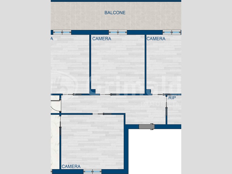 all'ingresso troviamo un disimpegno che conduce, frontalmente, alla cucina abitabile e a due camerette, entrambe con accesso al balcone principale con affaccio libero e diretto su via Crocillo, che dona luminosità e ariosità.
