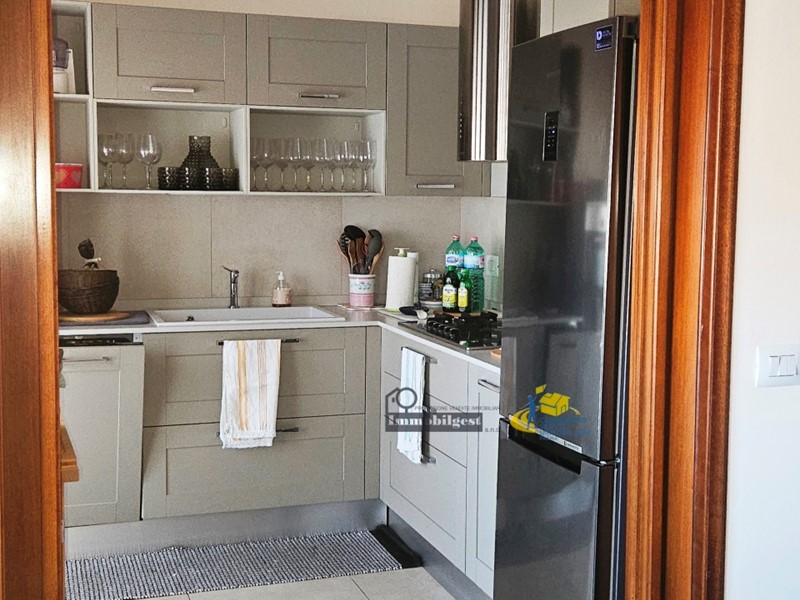 Gli elementi di pregio includono un’ampia cantina di 14 mq e un garage di 15 mq con apertura automatica, perfetti per veicoli, bici e spazio di stoccaggio. L’immobile è dotato di aria condizionata autonomo, doppi vetri, porta blindata, video citofono, cancello elettrico. Gli impianti sono a norma, sia elettrico sia idraulico, e l’impianto fognario è allacciato. Inoltre sono presenti elettrodomestici come lavastoviglie e frigorifero, oltre a tapparelle elettriche che aumentano comfort e sicurezza.