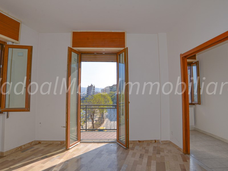 L’appartamento offre un ampio soggiorno, reso particolarmente luminoso dalla finestra e dalla porta finestra che conduce su una spaziosa balconata a L con vista aperta sul centro. Il cucinotto, separato dalla zona living, garantisce praticità e funzionalità. Le due camere da letto sono ampie e ariose. Il bagno, di generose dimensioni, è dotato di finestra. Completa la proprietà una comoda cantina. Il riscaldamento è centralizzato con termo valvole.