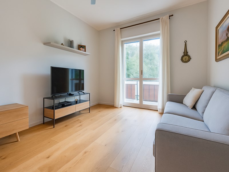 La proprietò dispone di un balcone di circa dodici metri lungo che si affaccia sul verde, garantendo tranquillità e una piacevole luce naturale nelle stanze.