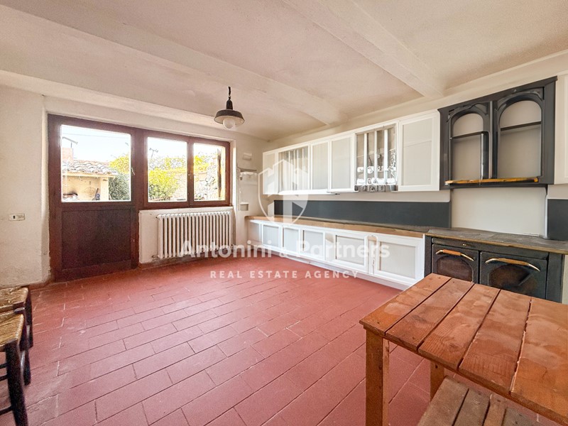 - Un piano terra composto di cucina abitabile con accesso diretto al cortile, soggiorno doppio con camino e bagno.