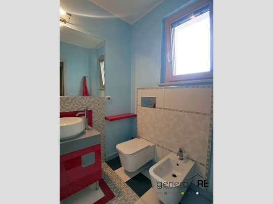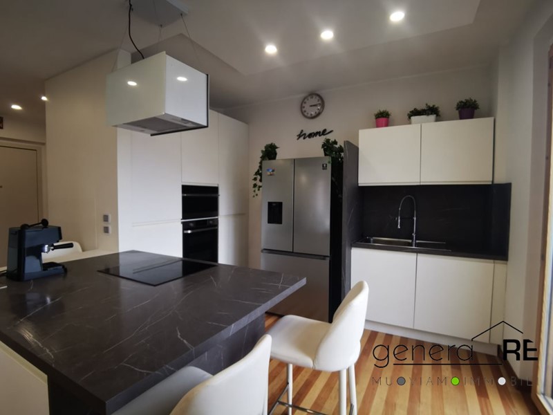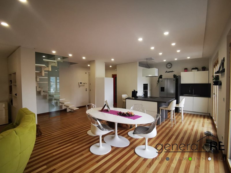 La Genera - Re propone in vendita un elegante appartamento di 150 mq, con posto auto di proprietà.\nL'immobile gode di una posizione privilegiata: in zona residenziale esclusiva, a pochi passi dalla Strada Parco e a breve distanza dal mare. Situato all'interno di un moderno complesso condominiale dotato di giardini, sala multiuso per riunioni, feste, eventi e vari locali per rimessaggio bici ecc. curato e posto auto di proprietà.\nL'appartamento, caratterizzato da linee moderne e finiture di pregio, si sviluppa su due livelli:\n - Primo livello: ingresso su un ampio open space con cucina a vista, raffinato parquet bicolore in teak, zona pranzo e accogliente area living, ideale per momenti di convivialità e relax. Un bagno di servizio e un ampio terrazzino completano il piano.\n - Secondo livello: una scenografica scala in vetro conduce alla zona notte, composta da quattro camere da letto, di cui una con bagno e una con cabina armadio.\nL'abitazione si distingue inoltre per l'avanzato sistema impiantistico: climatizzazione radiante a pavimento con gestione autonoma, produzione di acqua calda sanitaria tramite solare termico integrato, caldaie a condensazione e pompe di calore di ultima generazione. Sono presenti contabilizzatori individuali wireless per la gestione dei consumi, impianto elettrico sezionato per zone, allarme volumetrico e videocitofono.\n\nPossibilità di acquisto a parte di garage.\n\nUn'abitazione che unisce comfort, funzionalità e stile contemporaneo, perfetta per chi cerca spazi luminosi, ambienti raffinati ed efficienza energetica di alto livello.\n