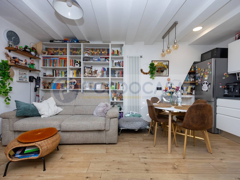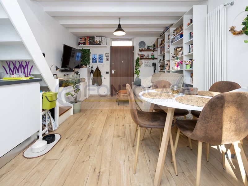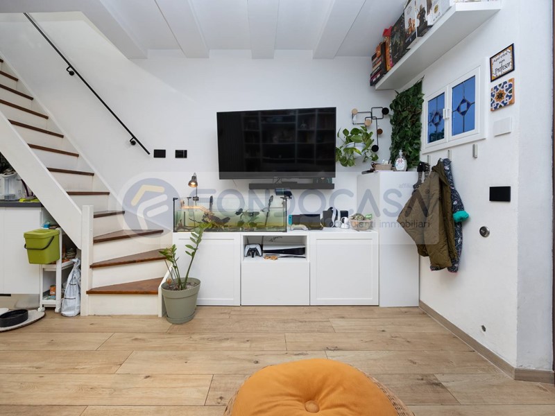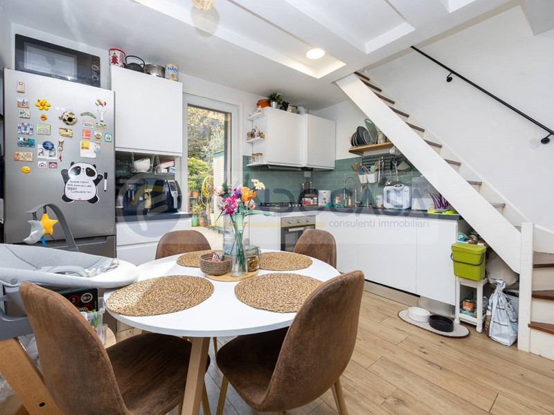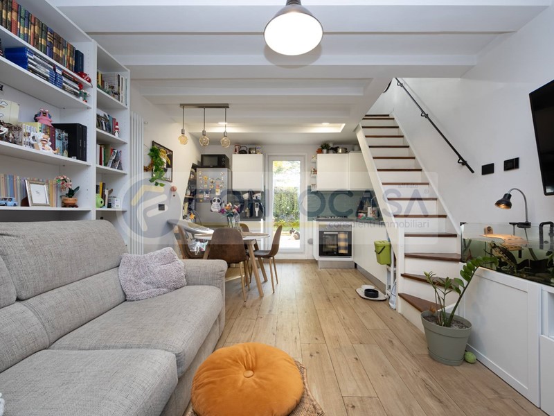 Bilocale di 53mq, distribuito su due livelli e rinnovato nel 2021, composto da ingresso diretto su zona giorno con angolo cottura, avente accesso ad un bellissimo GIARDINO PRIVATO di 20mq al piano terra e da una camera da letto ed un bagno finestrato al primo piano, accessibile tramite scala interna.