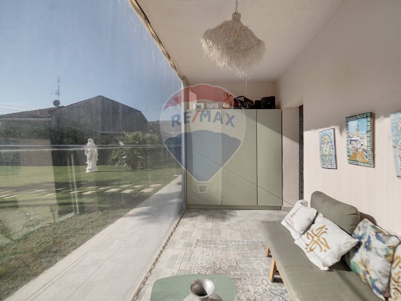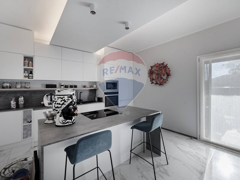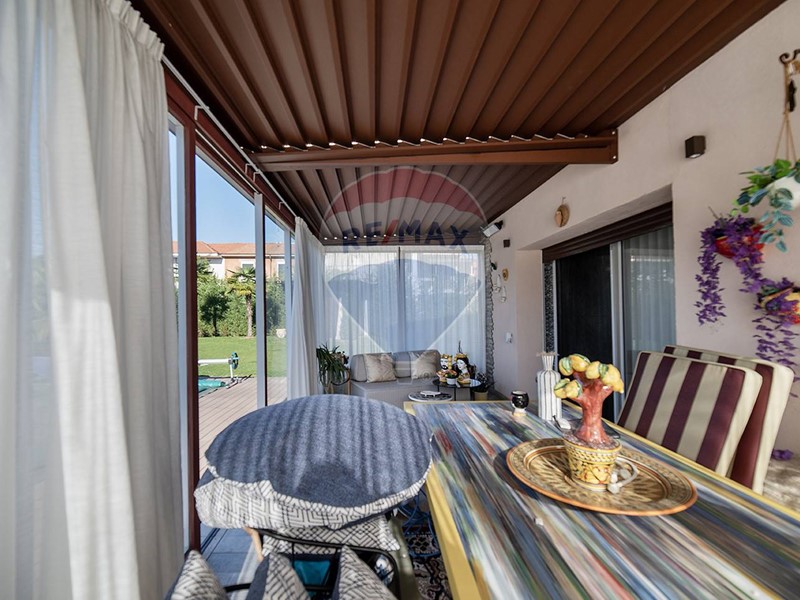 Allinterno, lingresso accoglie con una moderna cucina a vista collegata ad una veranda, perfetta per pranzi e cene in ogni stagione. Sul lato sinistro si apre un luminoso soggiorno, anchesso dotato di veranda con affaccio sulla piscina, impreziosita da una pergola bioclimatica automatizzata, che garantisce comfort e ombreggiatura personalizzabile in base alle condizioni meteo.