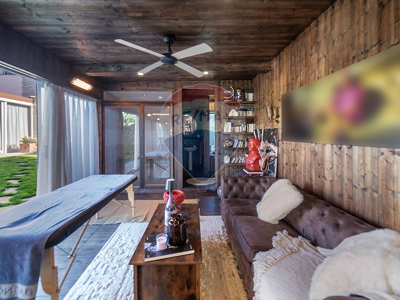 È presente un ampio box attualmente utilizzato come dependance, con area wellness, completa di bagno turco, vasca idromassaggio e salottino privato, ideale per rigenerarsi in totale riservatezza.