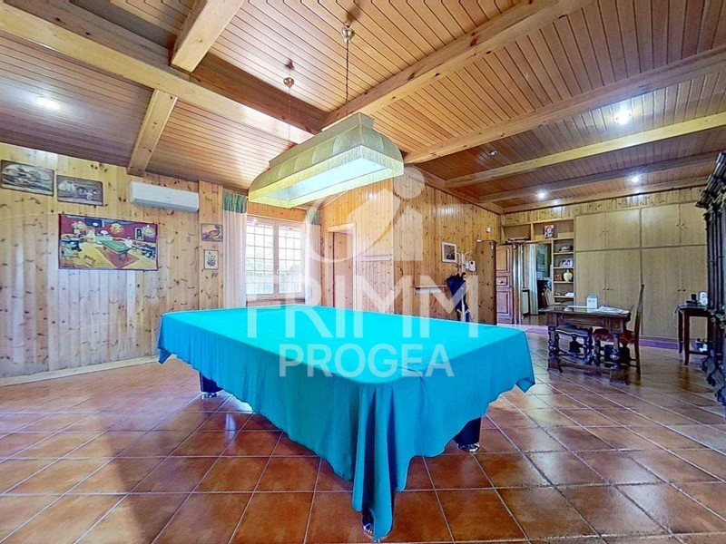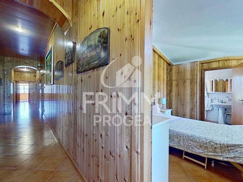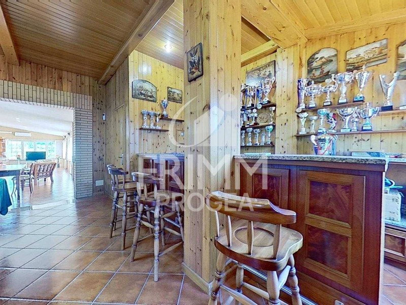 Allinterno troviamo oltre dieci camere, diversi bagni e cucine, unelegante sala biliardo con angolo bar, ampie zone living con camini, sala da pranzo, terrazzi, portici e cortile interno. Le finiture in legno e i dettagli artigianali contribuiscono a creare unatmosfera calda e accogliente, perfetta per una dimora di rappresentanza o per chi desidera una casa di grande prestigio immersa nella natura.