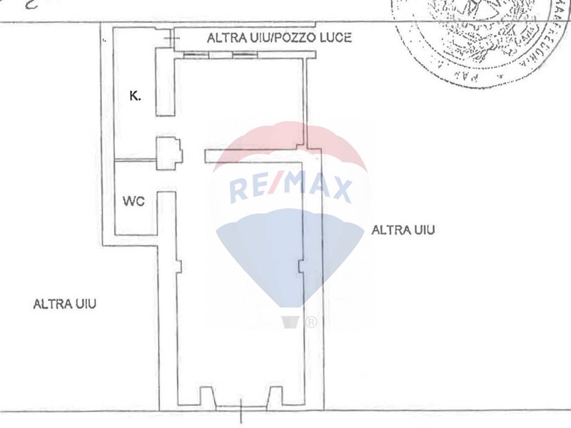 La sua composizione interna attuale comprende 2 locali, Il primo dal quale si ha accesso all'immobile è molto ampio, la stanza posteriore è servita da due ampie finestre e poi vi è un cucinotto, il bagno da cui si accede ad un controsoffitto. ed 1 pozzo luce .