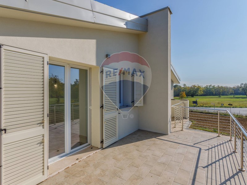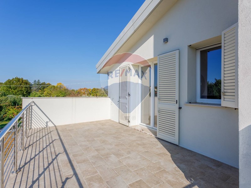 Salendo al primo piano, la dimensione si fa più intima: tre camere da letto, di cui due con servizio in comune, e la camera padronale con bagno en suite, il tuo spazio privato, dove ogni dettaglio parla di equilibrio e serenità. Da qui si accede al grande terrazzo con loggia di circa 40 m², un luogo sospeso tra cielo e privacy, perfetto per una colazione lenta o un tramonto in silenzio.