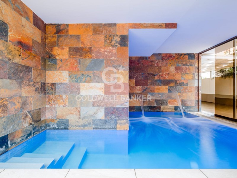 Il tutto è impreziosito da una piscina coperta e riscaldata (profondità 1,5 m) con due suggestive cascate.