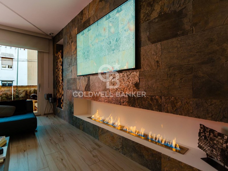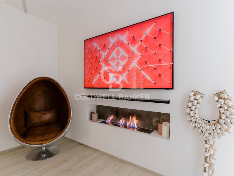 Al piano rialzato si accede a una ampia zona living di circa 90 m², impreziosita da un camino al bioetanolo (fascia 2 metri) e da spazi luminosi e accoglienti.