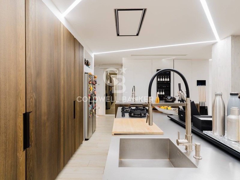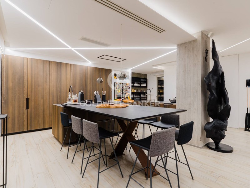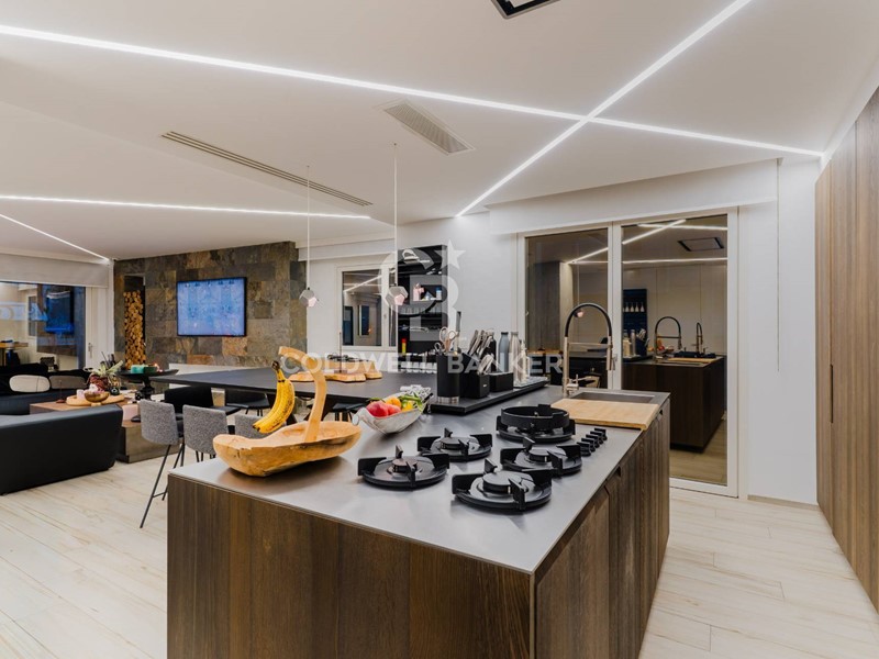Cucina Poliform con doppia isola, tritarifiuti, forno a microonde tradizionale e a vapore, scalda vivande e impianto di osmosi per acqua potabile;