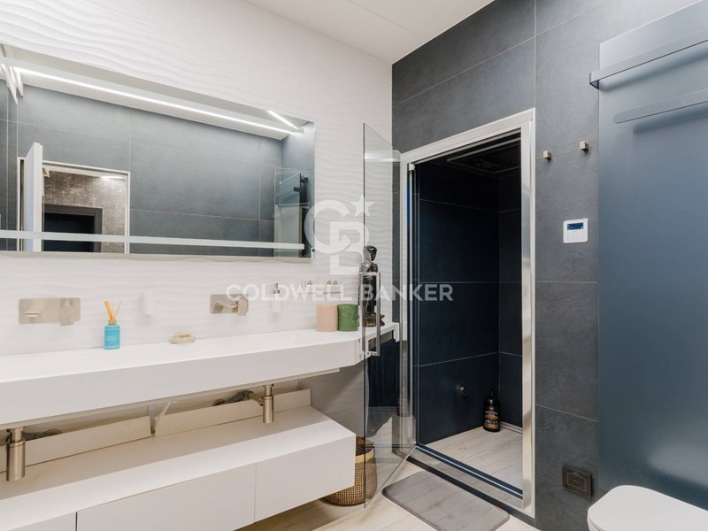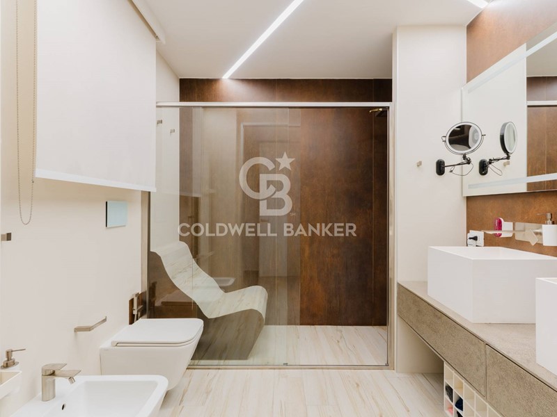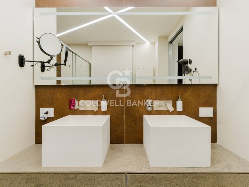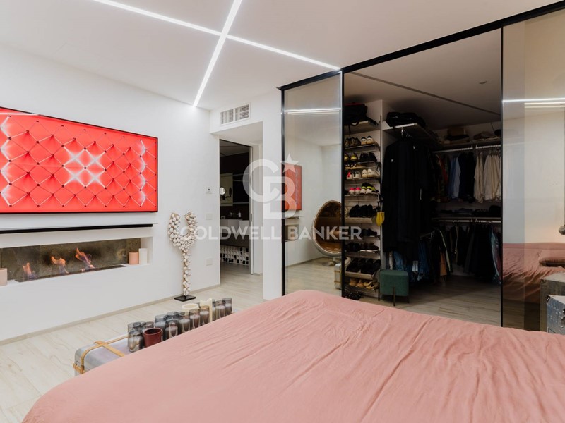 Completano il livello un bagno di servizio, una lavanderia e una camera padronale dotata anchessa di camino al bioetanolo (fascia di 1 metro) , con cabina armadio di circa 15 m² e bagno privato.