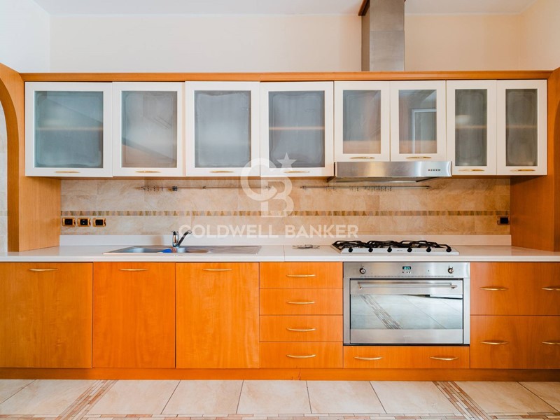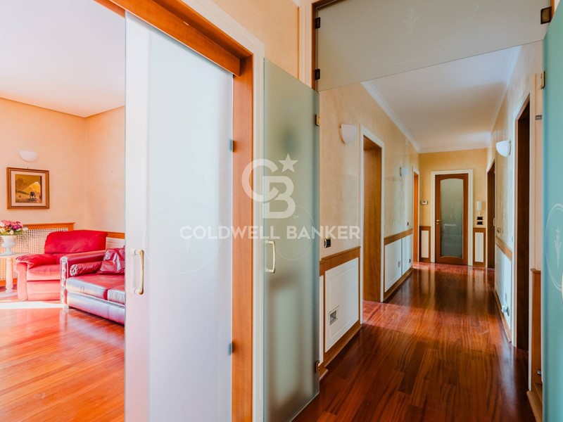Varcando la soglia, un ampio ed elegante ingresso accoglie conducendo verso un salone doppio finemente rifinito, con balconi affacciati sullesterno, e da una cucina abitabile, luminosa e sapientemente organizzata per coniugare estetica e praticità.