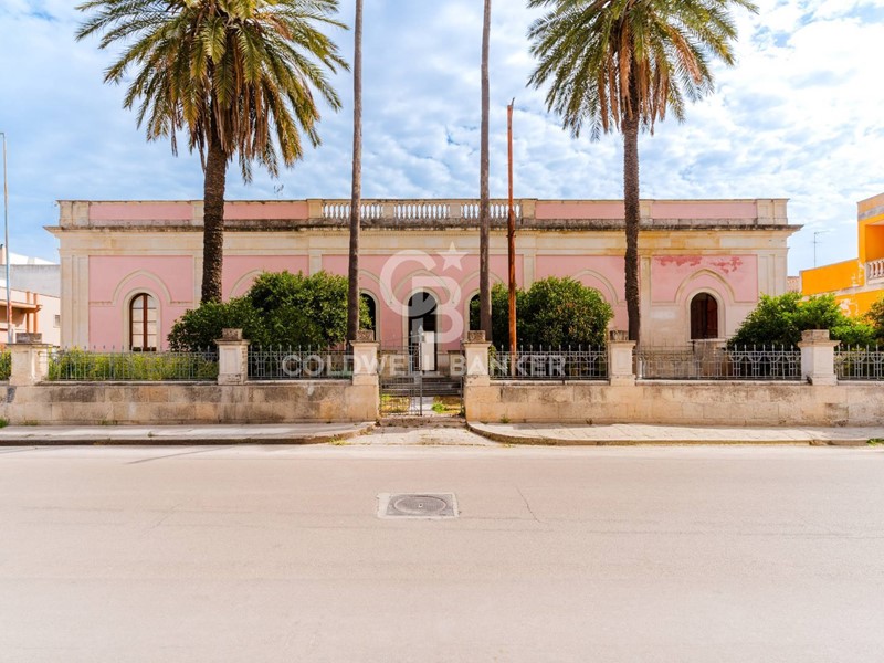La villa si estende per 400 mq commerciali con affaccio su tre strade principali, Via Galatina, Via Roma e Via Cesare Battisti.