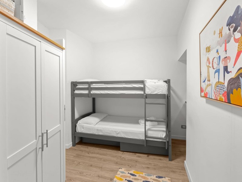 La zona notte è composta da una camera matrimoniale, una camera singola e un bagno elegante e funzionale. Ogni ambiente è finestrato, offrendo una piacevole sensazione di ariosità e benessere.