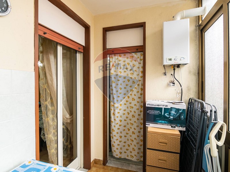 Ad Aci sant'Antonio, precisamente in via Francesco Orestano 57, luminoso appartamento al secondo piano di un edificio di tre piani, non ascensorato, di vani 3 con una superficie catastale di 93 metri quadrati, di cui 86 calpestabili, con ampi balconi in doppia esposizione (lato interno e lato strada).