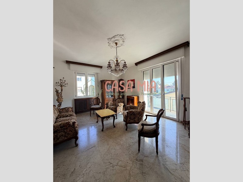 Allo stesso piano appartamento trilocale composto da soggiorno con angolo cucina, due camere, servizio con una metratura di 96 mq.