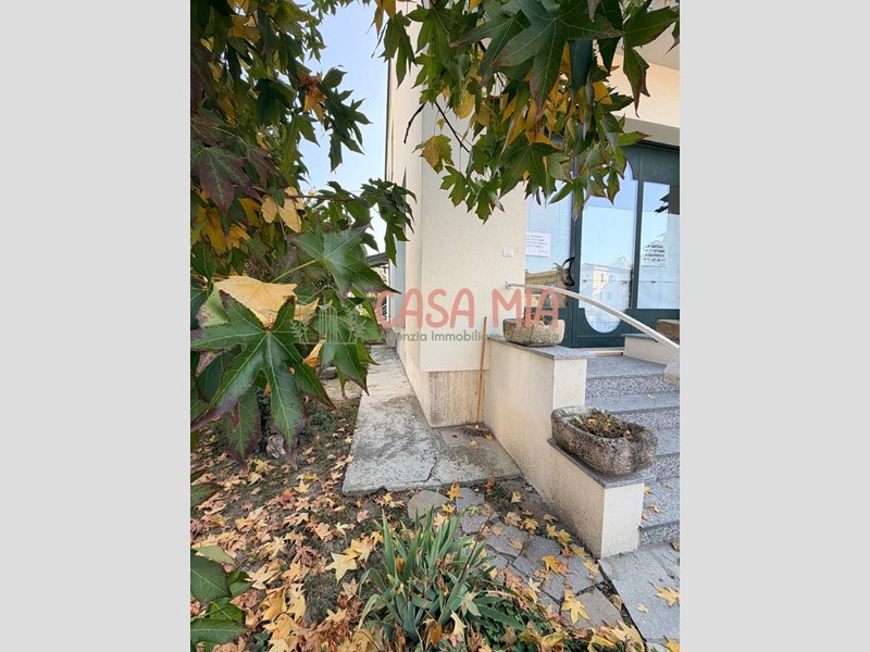 Al piano rialzato troviamo il negozio con doppio accesso indipendente e due vetrine con una metratura di c.a. 64 mq.