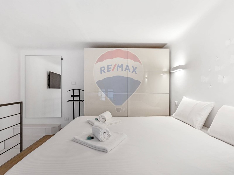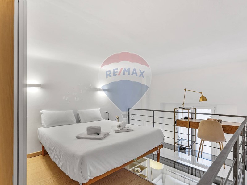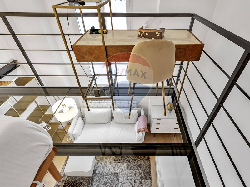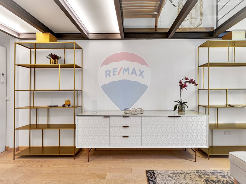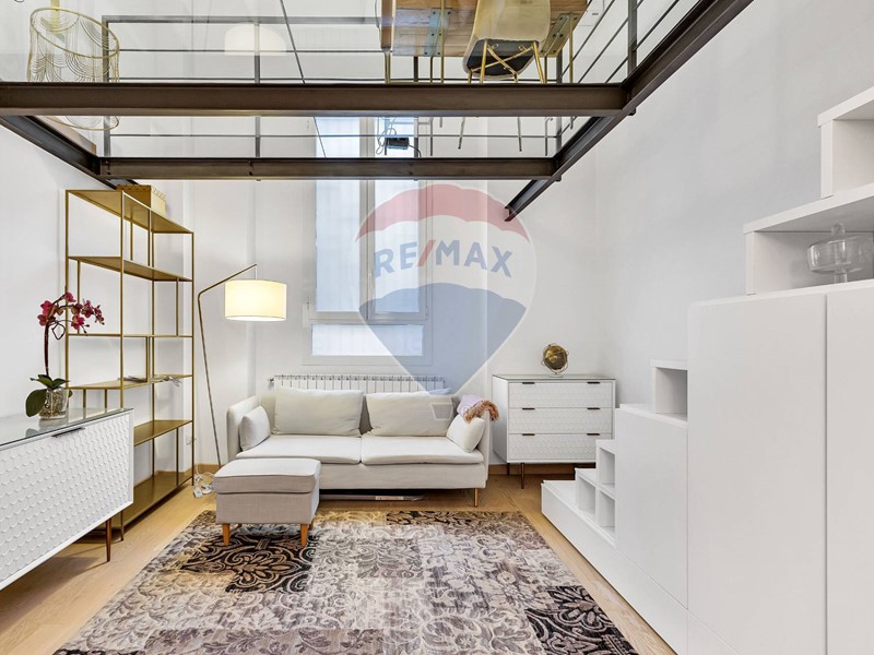 Accesso dal cortile interno del condominio ed ingresso su zona living e cucina a vista, comprensiva di tutti gli elettrodomestici ed accessori; ampio e confortevole soggiorno, ampio bagno con doccia ed elegante soppalco con struttura parzialmente vetrata che ospita la zona notte. Il riscaldamento è centralizzato con contabilizzatori e termo valvole ed è presente l'aria condizionata.