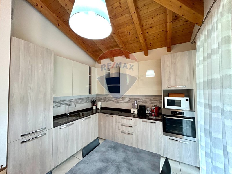 Le travi in legno a vista donano calore e carattere, mentre i serramenti in PVC con doppi vetri assicurano isolamento termico e acustico. A completare il comfort: portoncino blindato, videocitofono, porte interne Serport, predisposizione dellimpianto di condizionamento e riscaldamento a pavimento con tre termostati indipendenti per una gestione efficiente della temperatura.